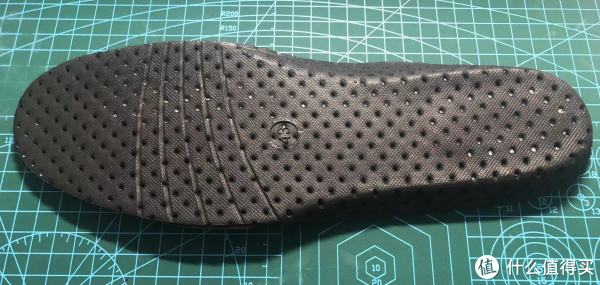 鞋垫:厚度达到了惊人的8mm,三层结构,最下面是一层很薄闭孔发泡材质,中间是4-5mm的发泡泡沫层。与脚直接接触的是一层皮革,ECCO将三者粘合,打孔,既兼顾了脚底舒适性又提供了如运动鞋般的柔软性和透气性。