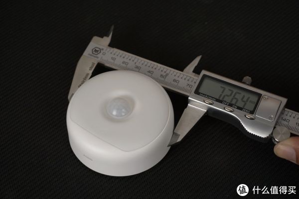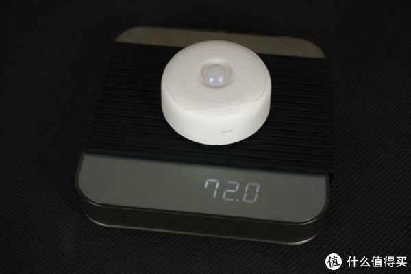 ▼夜灯重72g,通体白色,表面略带磨砂质感,感应区、发光区、灯身三者质感明显不同。