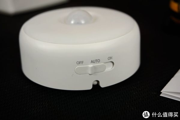 ▼侧面顶部的开关,开启后,有感应、常亮档可供选择。档位不同,亮度也略有差别,在后面使用时讲。