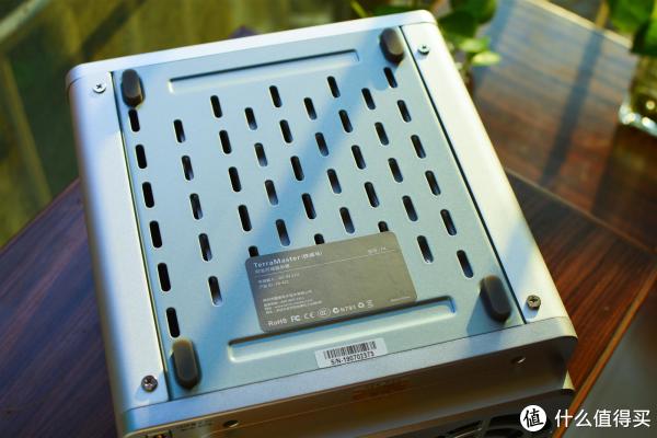 底部的4个防滑垫可以保证设备在桌面上的稳定,中间网状栅栏为散热孔。