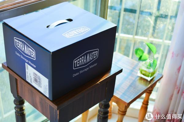 铁威马F4-421外包装为蓝色,提手上有些份量,前后左右无过多产品介绍,就只有侧边这个地方有标明产品的品名和规格等。