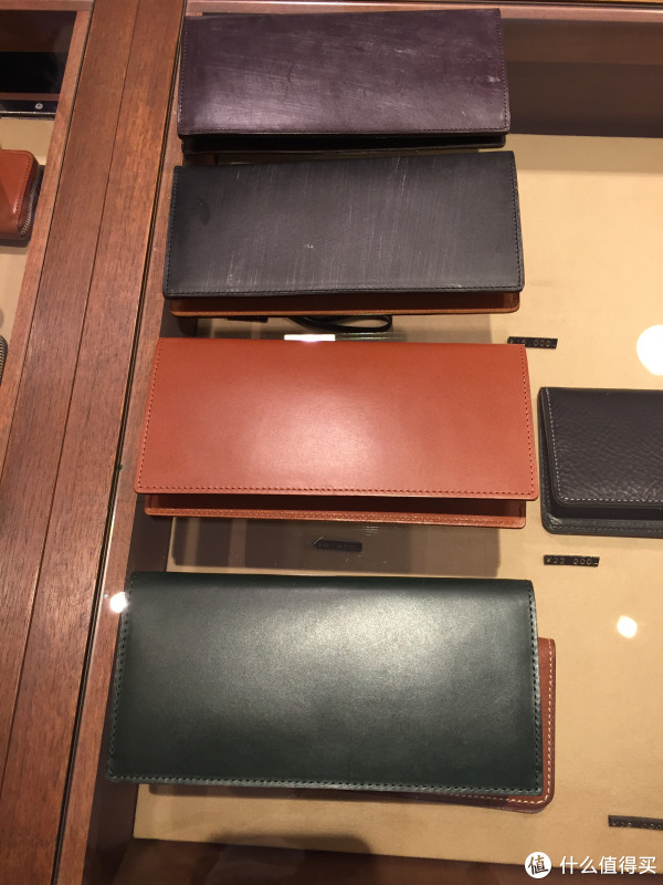 土屋鞄家的马臀革制品也很出名,价格也更贵一些,此次没有选择马臀皮的皮具主要是我个人不喜欢表面过分亮光的皮具。因为这种皮具很容易在表面留下划痕。抱歉这里也没有拍摄隔壁柜台里马臀皮钱包的照片。