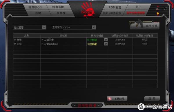 血手宝典体验版,可以选择游戏,选择《CS:GO》后,发现枪械库内置宏不多,就左键双击、左键自动双击两个。