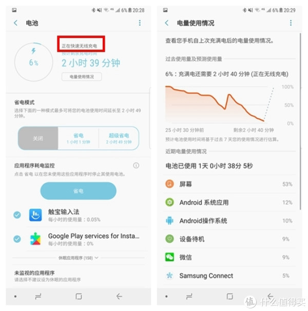 :充电时间2小时39分钟,什么鬼?楼主一开始还担心Anker 快充与Note8 不兼容,只是基本的5W无线充电。但是看到左边的提示:“正在快速无线充电” 说明是无线快充啊?