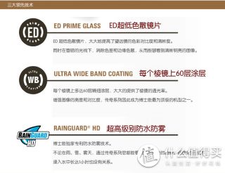 可以看到充氮防水和ED散色镜片的标示。性能指标的介绍,图片来自京东