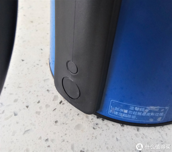 拆箱见到电水壶后第一感觉还不错,壶身为亮面蓝色很是抢眼,外层的塑料质感不错料,新水壶并没有闻到太大的塑料味。