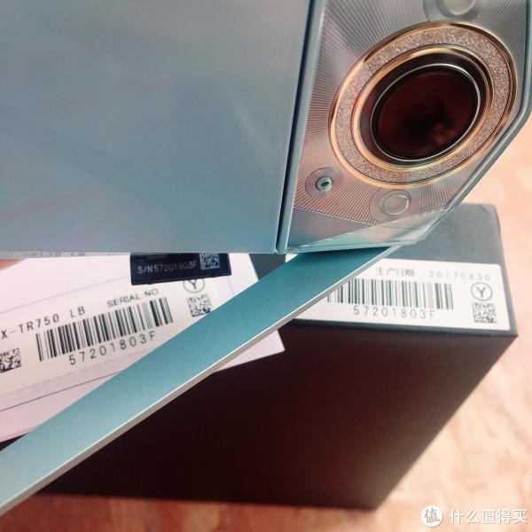 掀开盖子就看到了TR750自拍神器本器了,淡淡的粉蓝色深得我心,嫩而不矫情,跟我还挺像的。