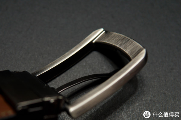 不管是针扣式还是自动扣皮带,我都不喜欢皮带头上有太多装饰。苏宁极家的这款产品的银色皮带头没有任何标识、装饰物,只是金属做了拉丝处理,看起来简洁大方,是我比较喜欢的。金属质感不错,不太重也并不轻,不知是什么合金材质。