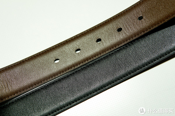 介绍说采用的是NAPPA牛皮,两面都是头层牛皮,中间夹层是什么东西就不知道了。皮带长115cm,宽3.3cm,有4个开孔。长宽都挺合适,就是开孔过于靠后,像我这样腰比较粗的人都需要自己打孔。