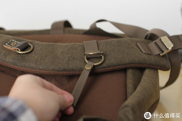 后面的带子可以让包固定在拉杆箱的拉杆上,现在的摄影包基本都有这样的设计,不管是单肩包还是双肩的。